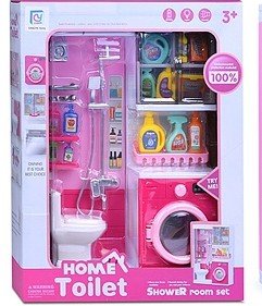 Набор мебели для кукол "Туалетная комната-1" (унитаз, душ, стиральная машина) с аксессуарами, на батарейках, в коробке 818-325