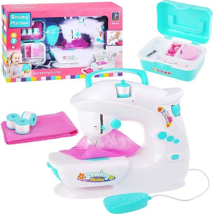 Детская швейная машинка Sewing Machine с аксессуарами порадует юную хозяйку возможностью расширить игровые сюжеты о доме и семье. В комплект входят: швейная машинка с подвижной иглой, педалью, открывающимся отсеком для мелочей, загорающейся лампочкой и переключателем стежка: он может быть прямым, а может располагаться зигзагом, 3 катушки белых ниток, 3 лоскутка ткани, мягкая набивка для пошива игрушки, мини-кейс для хранения принадлежностей, сантиметр, ножницы, пуговицы, декоративное сердечко. Игрушка работает от 3-х батареек типа АА. Батарейки в комплект не входят. Размер швейной машинки ДШВ: 26х10х21см.