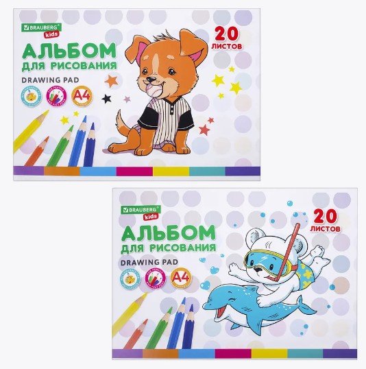 - Альбом д/рис. А4 20л., скоба, обложка картон, BRAUBERG KIDS, 203х288мм, Зверушки, 106691