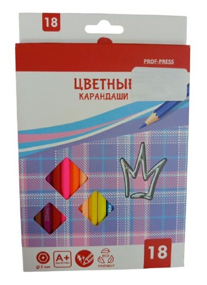 Карандаши цв. пластик 2М,набор,гексаг.18цв. КОРОНА (КЦ-9301) гриф.d=3,0mm,, в к/к