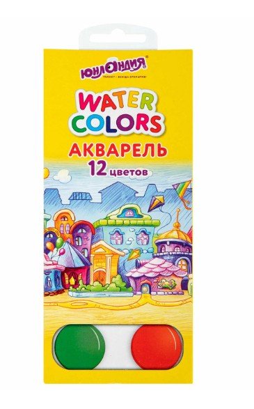 Краски акварельные ЮНЛАНДИЯ "ДОМИКИ" 12 цветов, медовые, круглые кюветы, 192550