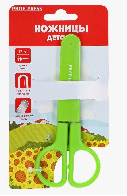 Ножницы детские 12 см. (НЖ-1165) с футляром для лезвий, зелёный