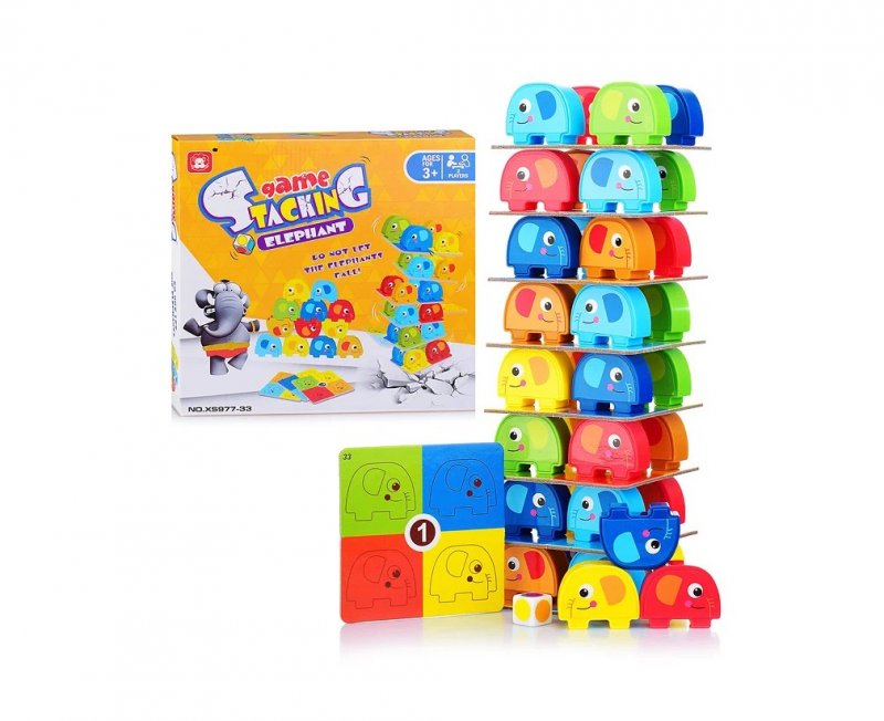 Игра имеет несколько вариантов. Для самых маленьких это лото без кубика, игрокам раздаются карточки-дощечки. Цель игры вперед соперника заполнить все карточки фигурками, аналогичными изображенным на картинках. Можно усложнить игру кубиком, вместе с карточками между игроками раздаются и все фигурки слонов. По указанию кубика игроки закрывают поля на своих карточках из имеющихся у них фигурок. Для деток постарше строительство башни из карточек и фигурок. Ребята могут соревноваться, кто построит башню без ошибок, быстрее или выше.