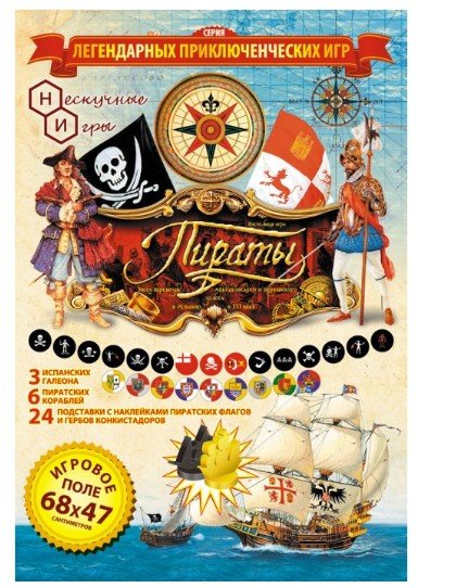 Красочное качественное исполнение, фишки в виде корабликов, роза ветров, флаги и краткая историческая справка про каждого капитана тех времен. И конечно, ругательства пиратов! Ваш ребенок почувствует себя настоящим Морским волком!