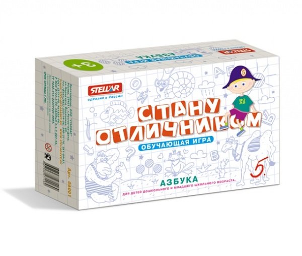Игра «Стану отличником «Азбука» понравится и детям, и мамам. В ней малышам предстоит именно играть с буквами, а не учить их. Еще интересней игру делает элемент сюрприза. Ребенку необходимо вытягивать перевернутые карточки с забавными изображениями, каждое из которых подписано, а затем выкладывать такое же слово из фишек на столе. Фишки легко крепятся друг с другом и окрашены в соответствии с основами фонетики: гласные – обозначены красным цветом, согласные - синим (звонкие) и зеленым (глухие). Пусть малыш их найдет по цвету самостоятельно, постарайтесь в произношении звука в словах доказать правильность его выбора.