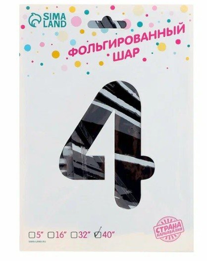 Страна Карнавалия Шар фольгированный 40" «Цифра 4», чёрный мрамор