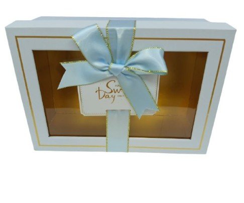 Коробка прямоугольная с окошком и бантом Голубой 17,5х12,5х6,5см ОМ72091301/3