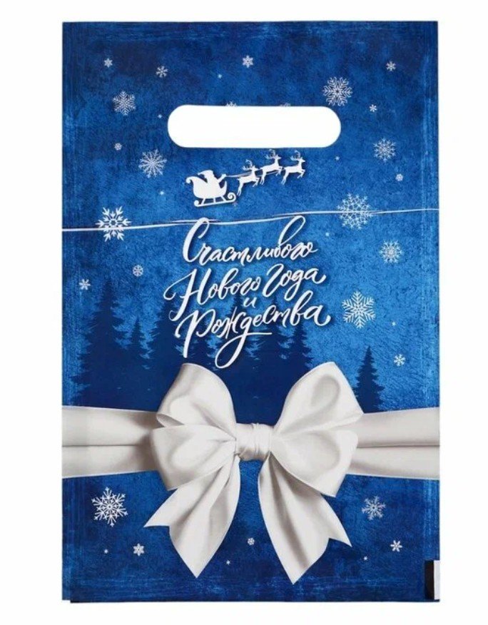 Пакет подарочный новогодний «Счастливого нового года и рождества», полиэтиленовый с вырубной ручкой,